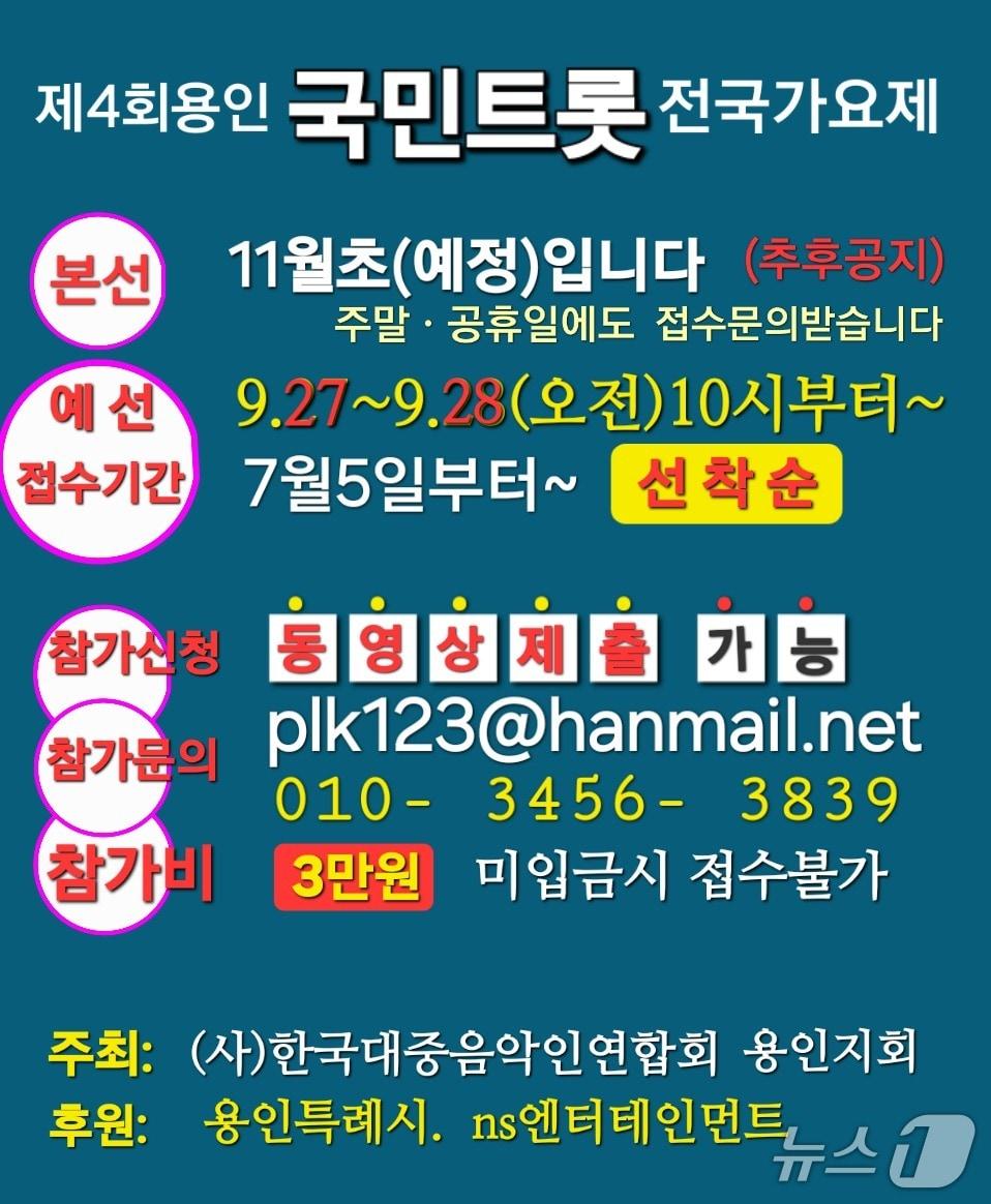 예선은 9월 27~28일 열려용인국민트롯전국가요제 개최 안내 포스터.(가요제측 제공)관련 키워드용인노래사랑사람무대실력꿈트롯김평석 기자 “무대서 하나 되다”…용인 중학교서 펼쳐진 '사제동행' 무대국도 43호선 용인 광교중앙로삼거리~죽전삼거리 스마트교차로 구축관련 기사"가정에 하나님 은총 함께 하시길"…정청래, 성탄예배 참석용인시, 15일 시민 문화축제 '용인! 빛으로 힘차게 나아가리' 개최용인시청 김동현, 보은장사씨름대회 백두장사 등극[뉴스1 PICK]판다 루이바오·후이바오, "엄마와 함께 보내는 마지막 생일""루이바오·후이바오 두돌 축하"…쌍둥이 판다, 엄마와 마지막 생일