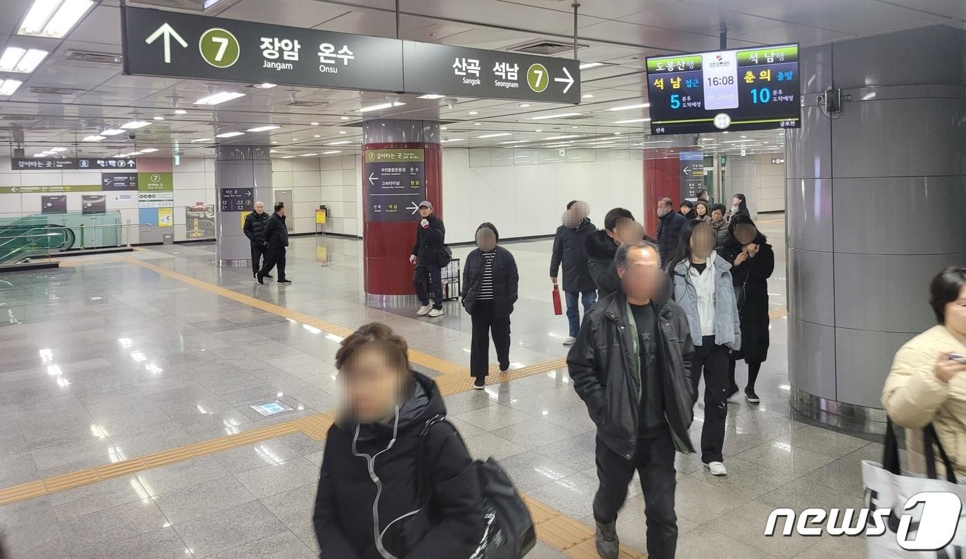 28일 오후 부평구청역 7호선을 이용하는 시민들이 발걸음을 옮기고 있다.2024.01.28.이시명기자/뉴스1이시명 기자 부천 금은방 여주인 살해한 40대 남성, 종로3가역 출구서 검거[속보] 부천 금은방 여성업주 살해한 40대 남성, 종로서 체포