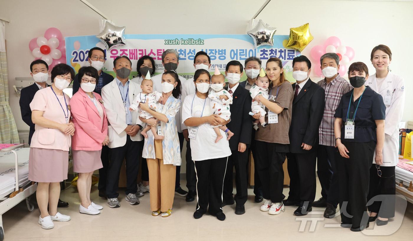 4일 가천대 길병원에서 심장병 수술을 받은 우즈베키스탄 환아들의 치료를 축하하는 기념식이 열리고 있다. (가천대 길병원 제공)2024. 9.4/뉴스1관련 키워드가천대길병원우즈베키스탄심장병인천시