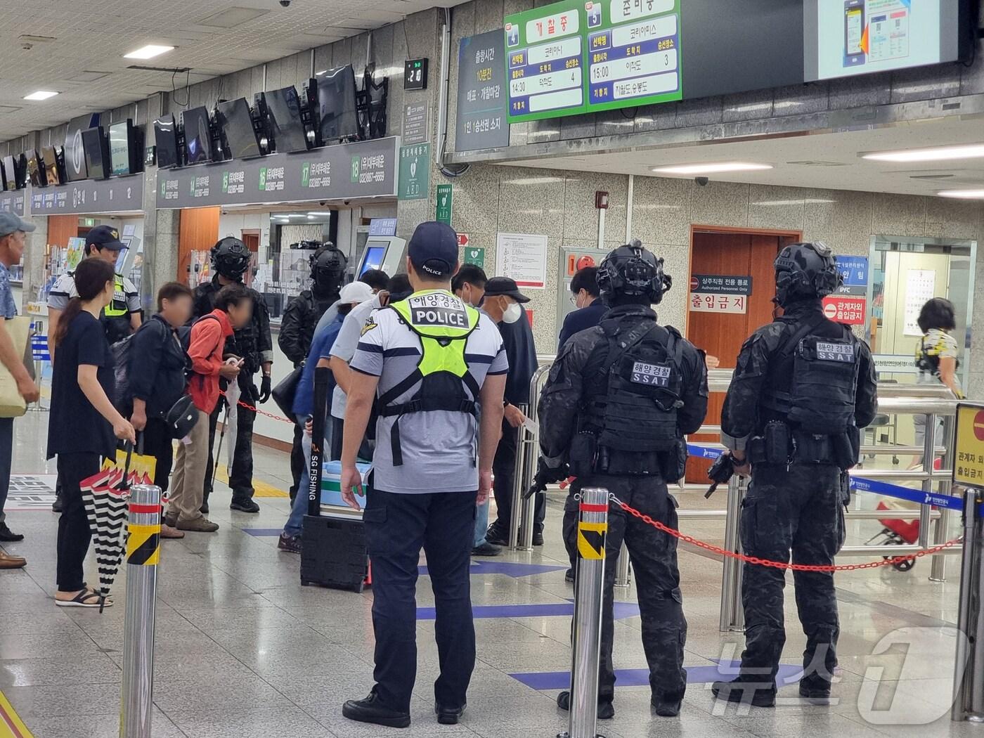 인천항연안여객터미널에 배치된 해경특공대(중부지방해양경찰청 제공) /뉴스1관련 키워드인천중부해경청특공대해경추석특별치안활동관련 기사'태안 해상 어선 전복' 승선원 2명 사망·2명 실종…수색 총력"이재석 경사 추모하겠다" 당직팀장 갯벌 들어가…특공대 출동 소동해군, 인천항서 통합 항만 방호 훈련…UFS 연습 일환