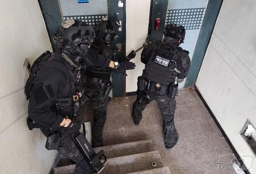 중부해경 특공대, 불법 외국어선 단속 훈련 '구슬땀'중부지방해양경찰청 특공대원들이 의왕시의 한 철거 예정 재개발단지에서 훈련을 하고 있다.(중부해경청 제공) / 뉴스1중부지방해양경찰청 특공대원이 의왕시의 한 철거 예정 재개발단지에서 훈련을 하고 있다.(중부해경청 제공) / 뉴스1관련 키워드중국어선해경중부해경청해경특공대훈련관련 기사해상 국경범죄 3년 사이 폭증… 해경, 해역별 대응 착수해경청, 서해 전역 불법 외국어선 특별 단속…"무관용 원칙""불법조업 강력 대응"…중부해경청, 中어선 2척 나포해경, 소청도 해역서 '불법조업' 중국어선 1척 나포·15척 퇴거