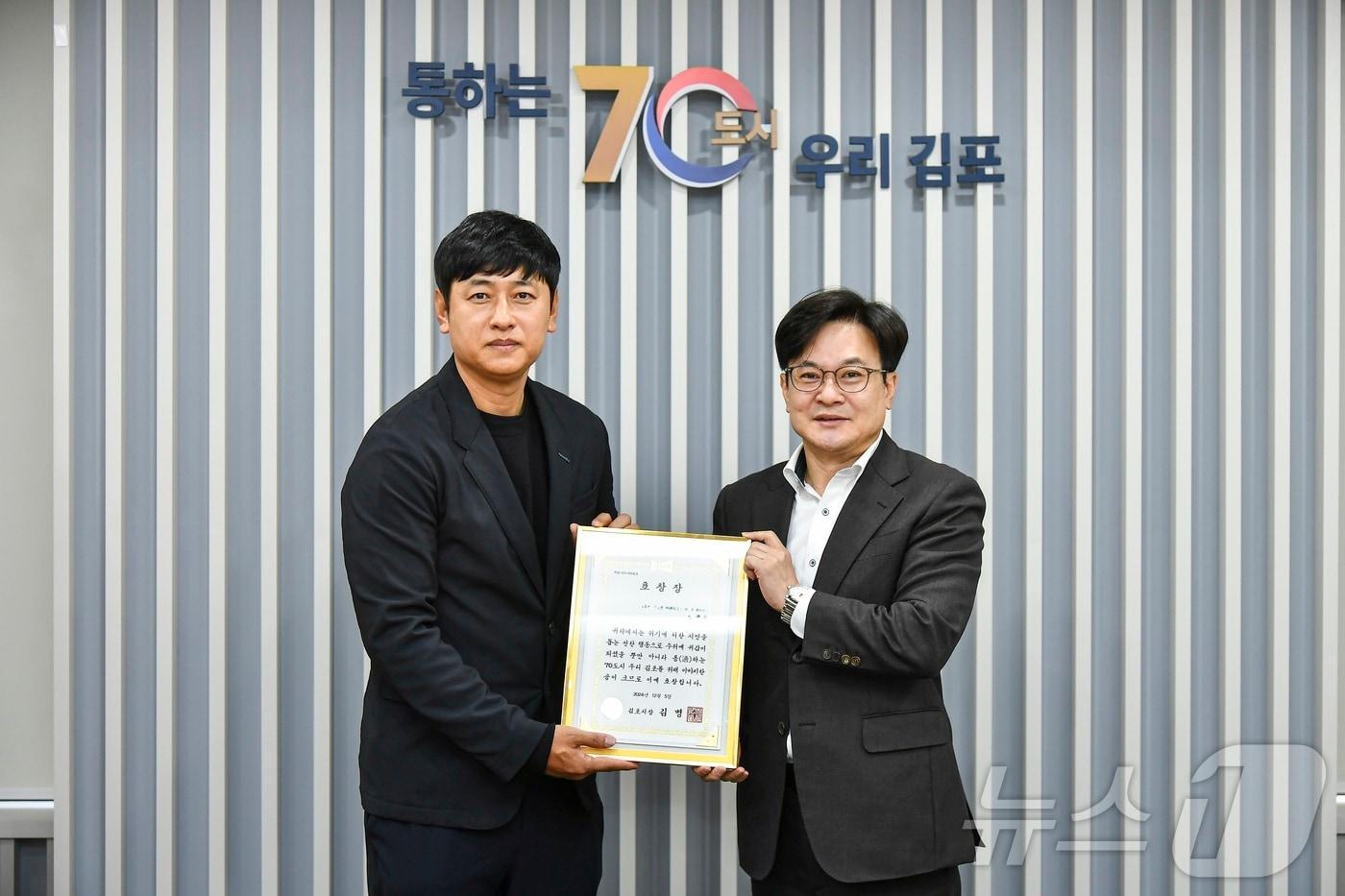 신현호씨(사진 왼쪽)가 모범 시민표창을 받고 있다.(경기 김포시 제공)/뉴스1이시명 기자 [오늘의날씨]인천(16일,금)…맑고, 아침 최저 -5~0도 '쌀쌀'부천 금은방 여주인 살해한 40대 남성, 종로3가역 출구서 검거