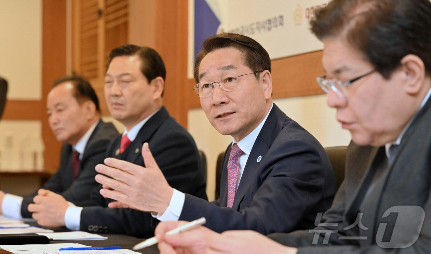 유정복 인천시장이 26일 미추홀공원 다례원(茶禮原)에서 열린 '지방 4대 협의체장 간담회'에서 발언을 하고 있다.(인천시 제공) / 뉴스1