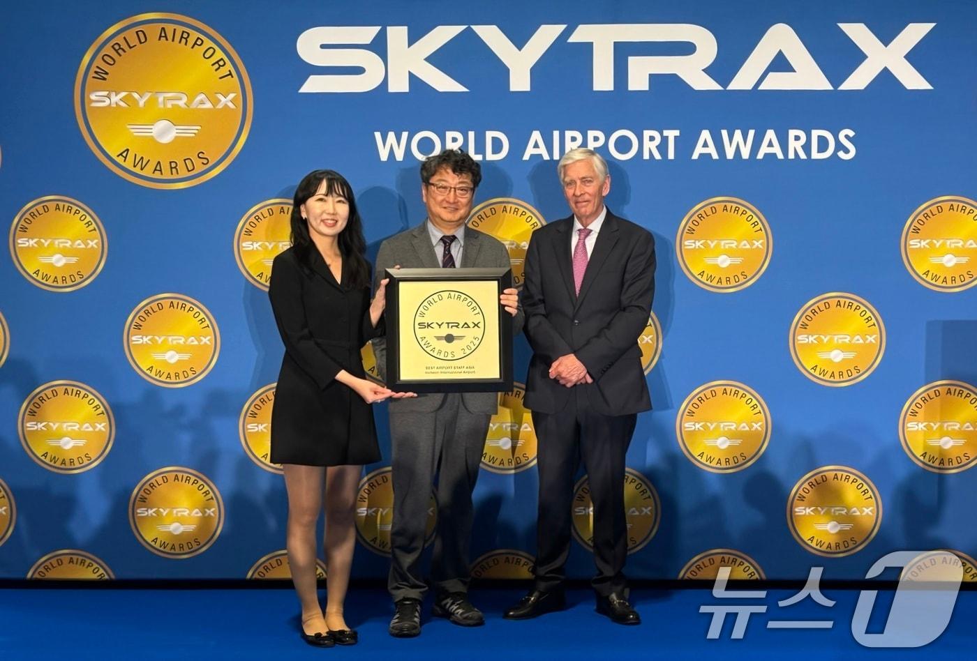스카이트랙스 어워즈 2관왕…직원 서비스 세계 1위김창규 인천국제공항공사 운영본부장(가운데)이 9일(현지시간) 스페인 마드리드에서 스카이트랙스 주관으로 열린 '2025 월드 에어포트 어워즈'에서 '세계 최우수 공항 직원상'을 수상한 후 에드워드 플레이스티드 스카이트랙스 회장과 기념촬영을 하고 있다. (인천공항공사 제공. 재판매 및 DB 금지) 2025.4.10/뉴스1관련 키워드인천국제공항인천관련 기사대한항공, 작년 4Q 영업이익 4131억원…전년비 5% 감소(1보)유정복 시장, 외교장관에 항의…"재외동포청 서울 이전 없다" 약속섬에어, 1호기 도입 "항공 소외 지역 취항, 지방공항 활성화 앞장"재외동포청 '서울행' 움직임에…"균형발전 가치 흔드는 일" 반발 확산경찰, '강선우 1억' 김경 재소환…엇갈리는 진술·공천 대가성 추궁