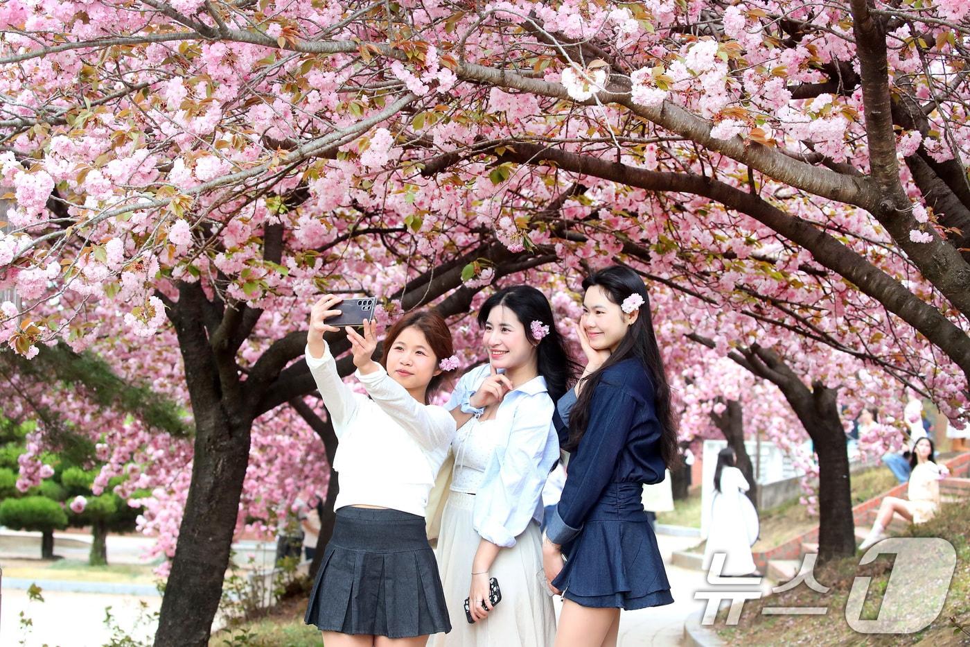 대구대학교 경산캠퍼스 공공인재대학 건물 뒤편 산책로에서 외국인 유학생들이 활짝 핀 겹벚꽃을 배경으로 사진을 찍고 있다.(사진은 기사 내용과 무관함) / 뉴스1 ⓒ News1이시명 기자 주택서 현직 경찰관 흉기로 찌른 40대 여성 검거중부해역 해양오염사고 60건 분석…인천·평택이 60% 차지