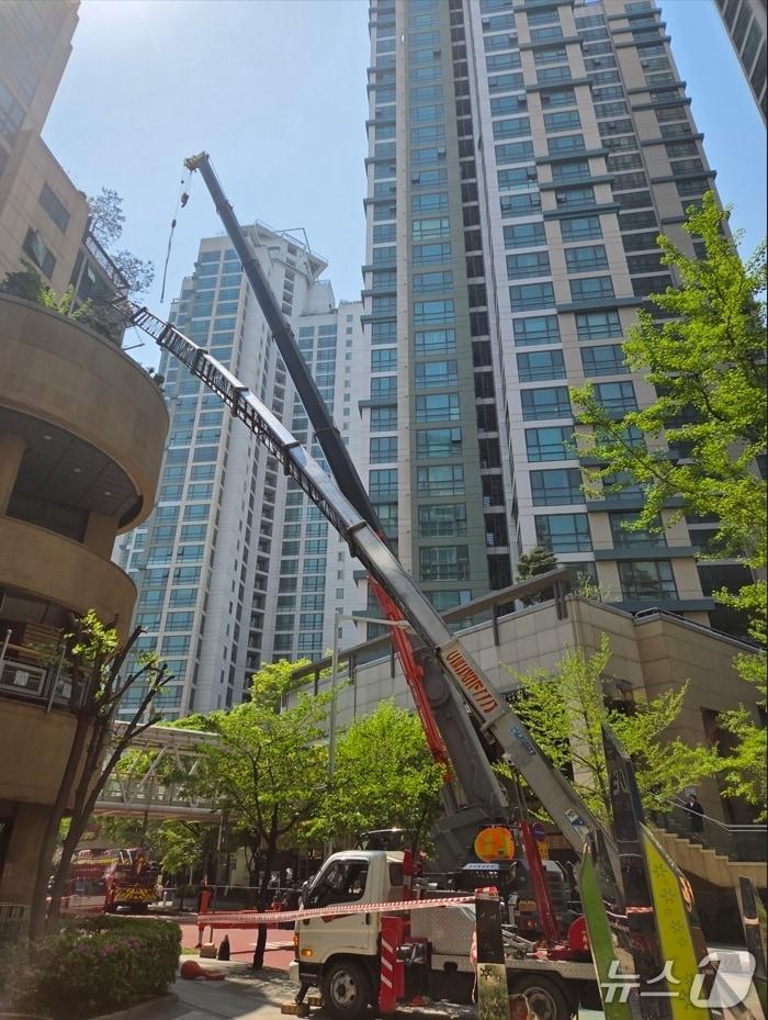 부천서 건축자재 옮기던 사다리차 휘어져 유리창 파손