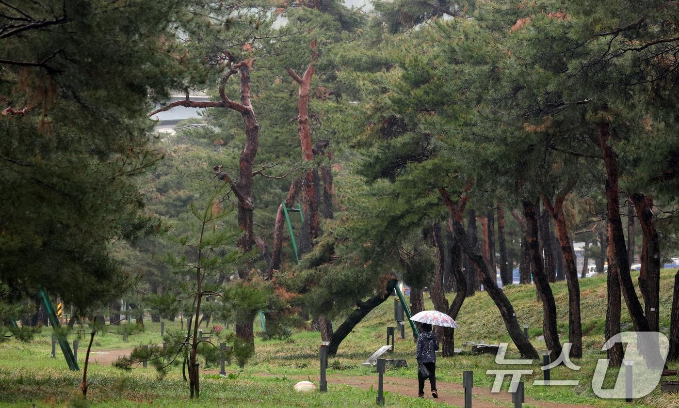 경기 수원시 장안구 노송지대에서 시민들이 우산을 쓰고 지나가고 있다. (사진은 기사 내용과 무관함) / 뉴스1 ⓒ News1