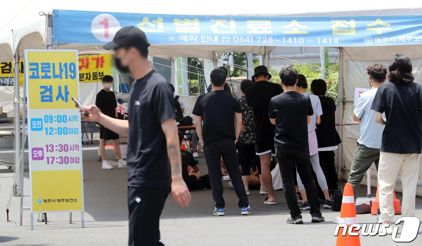 제주 지역 코로나 확산세가 이어지고 있는 15일 오후 제주보건소 선별진료소에서 시민들이 대기하고 있다. 2021.7.15/뉴스1 ⓒ News1 오현지 기자