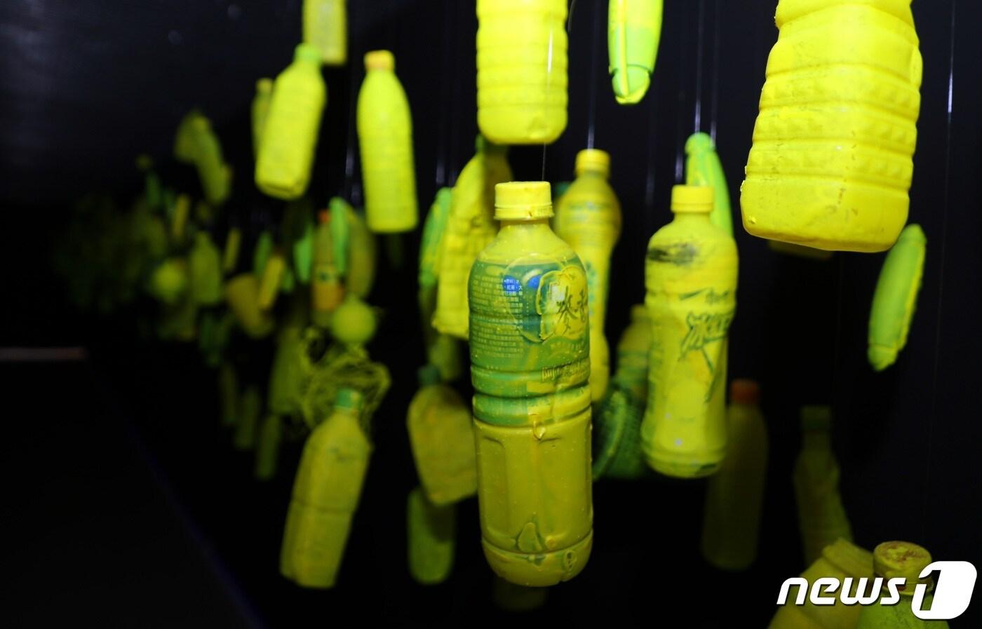 제주시 이호해수욕장 종합상황실에 플라스틱 생수병 등으로 은하수를 표현한 작품이 걸려있다(뉴스1DB) ⓒ News1 고동명 기자