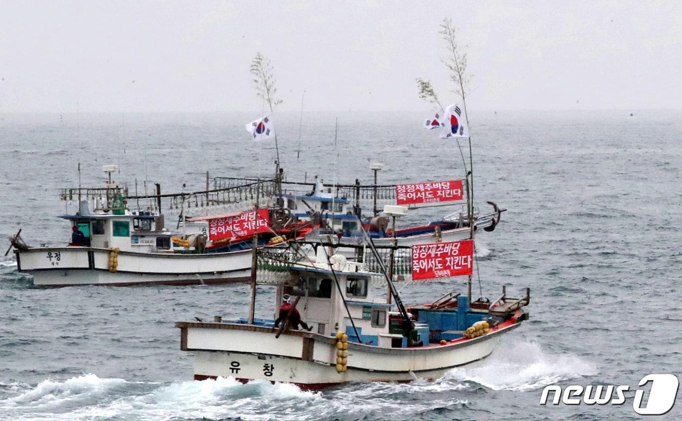도두어촌계원 150여 명 도두항 회견 후 해상시위도두어부회와 도두 어촌계 해녀들이 22일 오전 제주시 도두항을 출항해 일본 핵 오염수 방류 반대 해상 시위를 하고 있다. 2023.5.22/뉴스1 ⓒ News1 오현지 기자도두어부회와 도두 어촌계 해녀들이 22일 오전 제주시 도두항에서 일본 원전 오염수 방류 반대 해상 시위에 앞서 규탄 기자회견을 하고 있다. 2023.5.22/뉴스1 ⓒ News1 오현지 기자