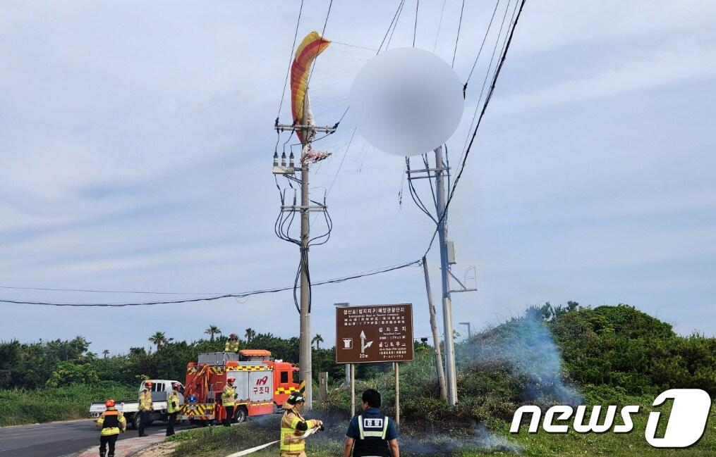 전기차단으로 인근 394가구 일시 정전16일 오후 제주 서귀포시 성산읍 섭지코지해변 인근에서 패러글라이딩 중이던 60대 남성이 고압선에 걸려 숨지는 사고가 발생했다.(제주동부소방서 제공)