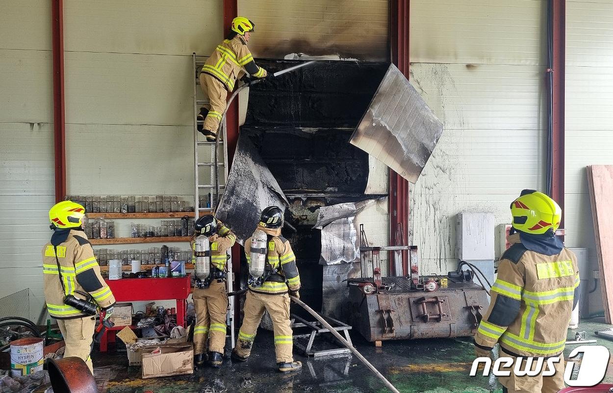 21일 오전 제주 서귀포시 안덕면 상창리의 한 건설기계 정비용 창고에서 불이 나 소방대원들이 진화작업을 하고 있다.(제주특별자치도 소방안전본부 제공)모슬포우체국 김윤환 주무관.오미란 기자 [인사] 제주도의회[인사]서귀포시