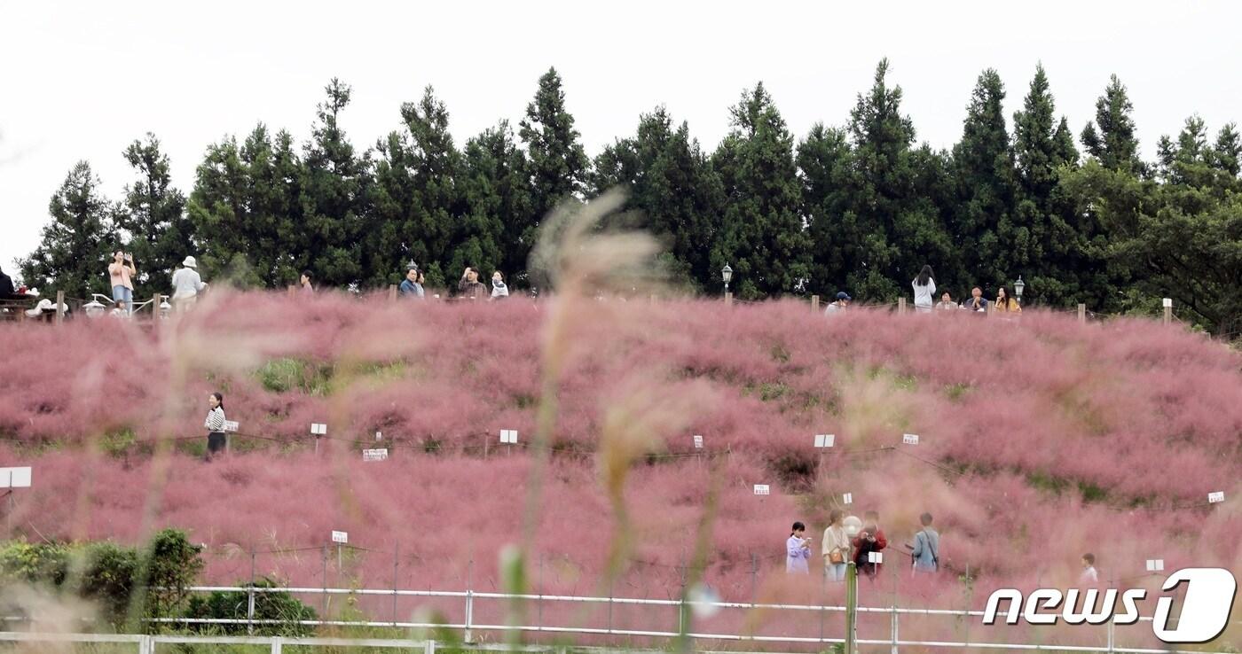 지난달 30일 오후 제주시 애월읍 새별오름 인근 한 카페에 핑크뮬리가 피어있다.2023.9.30/뉴스1 ⓒ News1 고동명 기자오미란 기자 '미국 감귤 만다린 무관세 습격'에 제주 감귤업계, 사활 건 총력 대응전[인사] 제주도의회