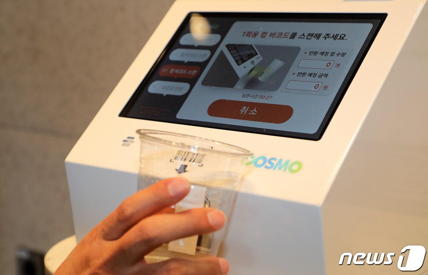 제주지역 일회용컵 보증금제 적용대상 매장 중 최근 상당수가 '보증금제 라벨이 부착된 컵이 없다' 등의 이유로 사실상 일회용컵 보증금제 참여를 철회한 것으로 알려졌다. 제주시의 한 식음료 프랜차이즈 매장에서 '일회용컵 보증금제'가 시행되고 있다. .2022.12.2/뉴스1 ⓒ News1 오미란 기자