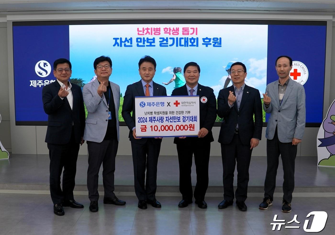 제주은행은 대한적십자사 제주도지사에 도내 난치병 학생 지원 및 위기가정 긴급지원 사업 기부금 1000만원을 기탁했다고 25일 밝혔다(제주은행 제공)/뉴스1