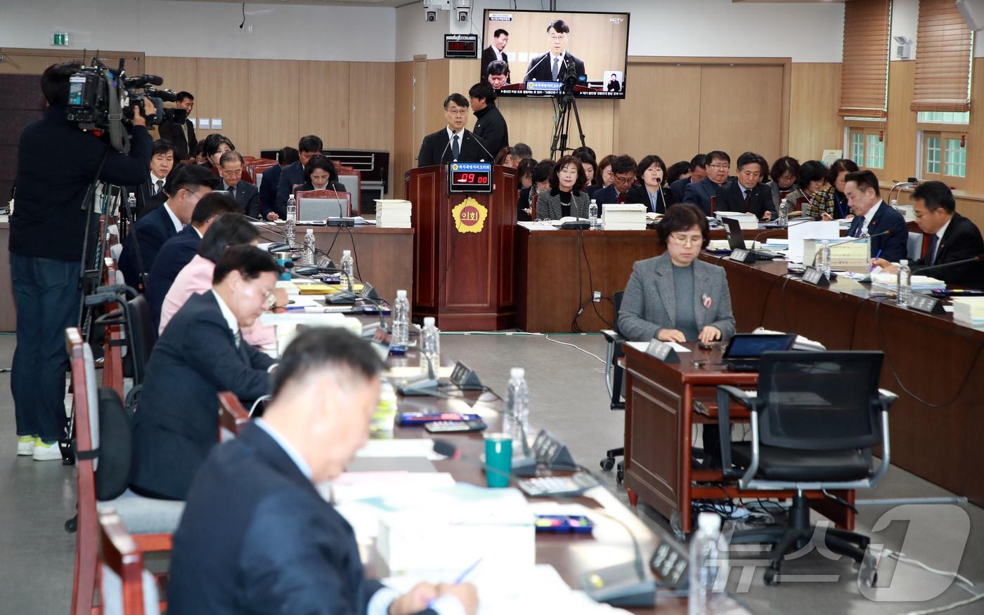 의회 새해 예산안 심사서 도마…"징수권도 없는데" 우려교육청 "2026년 시설 투자 집중…가능한 규모 줄이겠다"29일 제주특별자치도의회 대회의실에서 제433회 도의회 제2차 정례회 예산결산특별위원회 제4차 회의가 열리고 있다.(제주특별자치도의회 제공)관련 키워드제주제주의회오미란 기자 '미국 감귤 만다린 무관세 습격'에 제주 감귤업계, 사활 건 총력 대응전[인사] 제주도의회관련 기사'미국 감귤 만다린 무관세 습격'에 제주 감귤업계, 사활 건 총력 대응전제주도의회 의정홍보위원회 출범…"도민과의 든든한 가교"이원택 의원 "전북을 에너지 특화한 국제도시로 조성"[오늘의 주요일정] 제주(16일, 금)이광준 군산문화관광재단 대표이사 후보자, 인사청문회 통과