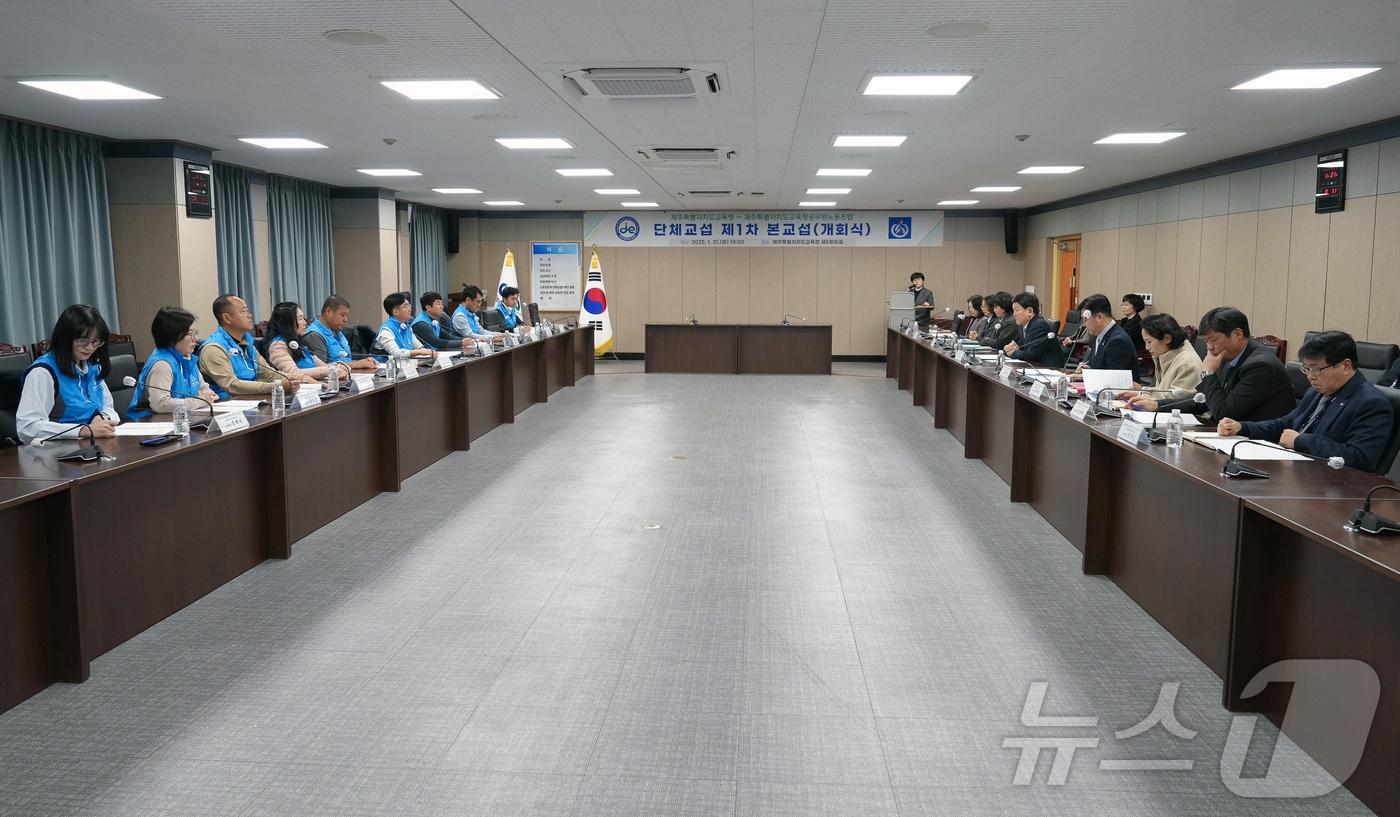 21일 오전 제주도교육청 5회의실에서 제주특별자치도교육청공무원노동조합과 단체교섭 개회식이 열리고 있다.(도교육청 제공)관련 키워드제주관련 기사'은퇴' 이웅희 "선수 때 경험 살려 최고의 스카우트 되겠다"진재영, 교토 야외 온천서 어깨 드러낸 채 그림 같은 뒤태·미모 [N샷]진보당 제주도당, 제주도지사 후보에 김명호 도당위원장 확정제주도 청년 특화 창업 및 주거 안정 지원 등에 1793억 투입김포~제주 항공기서 연기…승객 179명 출발 2시간 지연