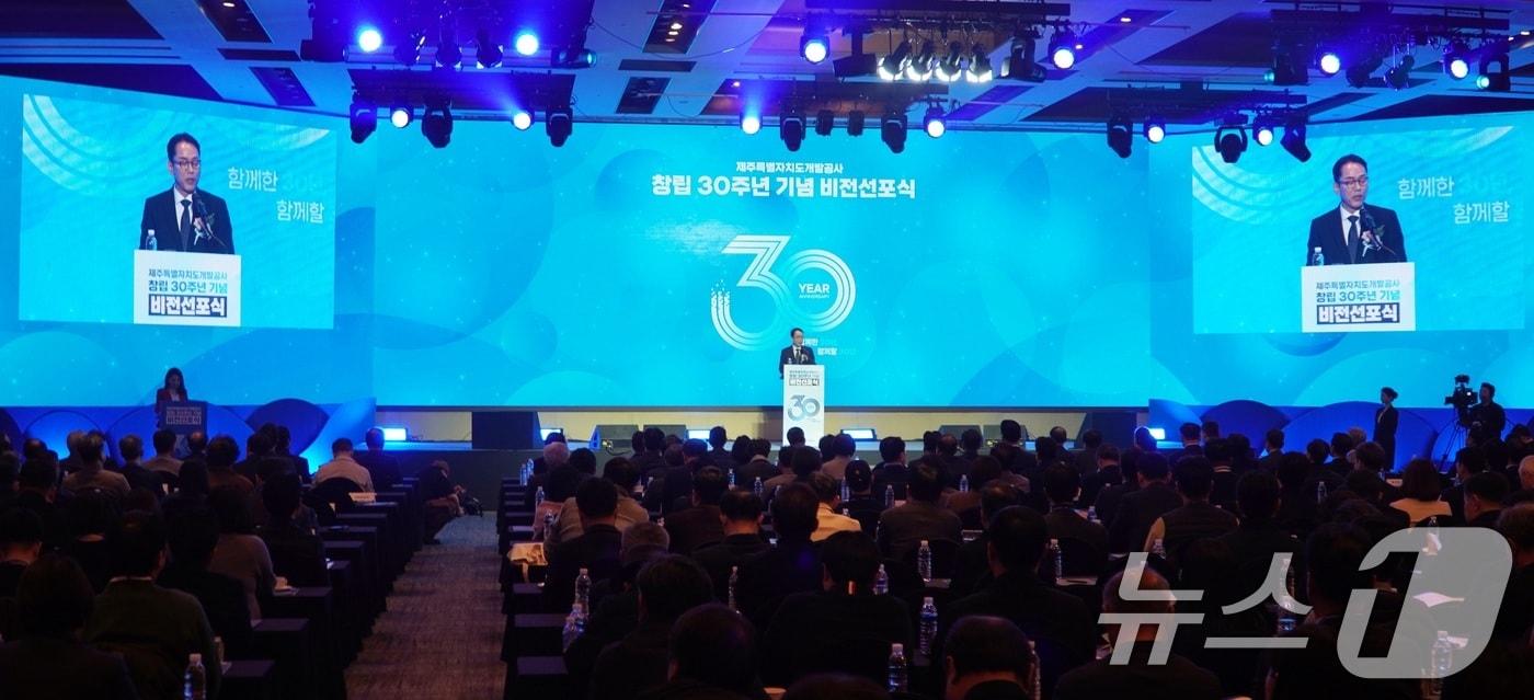 삼다수를 생산하는 지방공기업 제주도개발공사의 백경훈 사장이 17일 제주시 메종글래드 호텔에서 열린 창립 30주년 기념식에서 인사말을 하고 있다. 2025.3.17/뉴스1 ⓒ News1 고동명 기자고동명 기자 오영훈 제주지사, 尹 징역 5년에 "국민 기대에 턱없이 부족"제주도, 설 명절 앞두고 제수용·선물용 식품위생 점검