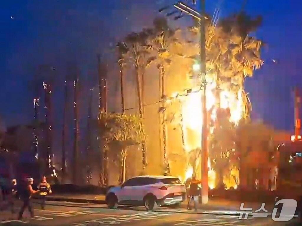 19일 오후 7시22분 쯤 제주시 한림읍 대림리에서 야자수에 불이 붙어 소방당국이 진압하고 있다.(제주도소방안전본부 제공. 재판매 및 DB 금지)홍수영 기자 진보당 제주도당, 제주도지사 후보에 김명호 도당위원장 확정제주도 청년 특화 창업 및 주거 안정 지원 등에 1793억 투입