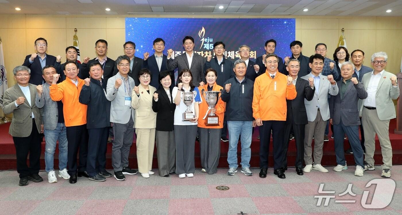 20일 오후 제주도체육회관에서 열린 제59회 제주도민체육대회 폐막식에서 관계자들이 기념촬영을 하고 있다.(제주도 제공. 재판매 및 DB 금지)홍수영 기자 진보당 제주도당, 제주도지사 후보에 김명호 도당위원장 확정제주도 청년 특화 창업 및 주거 안정 지원 등에 1793억 투입
