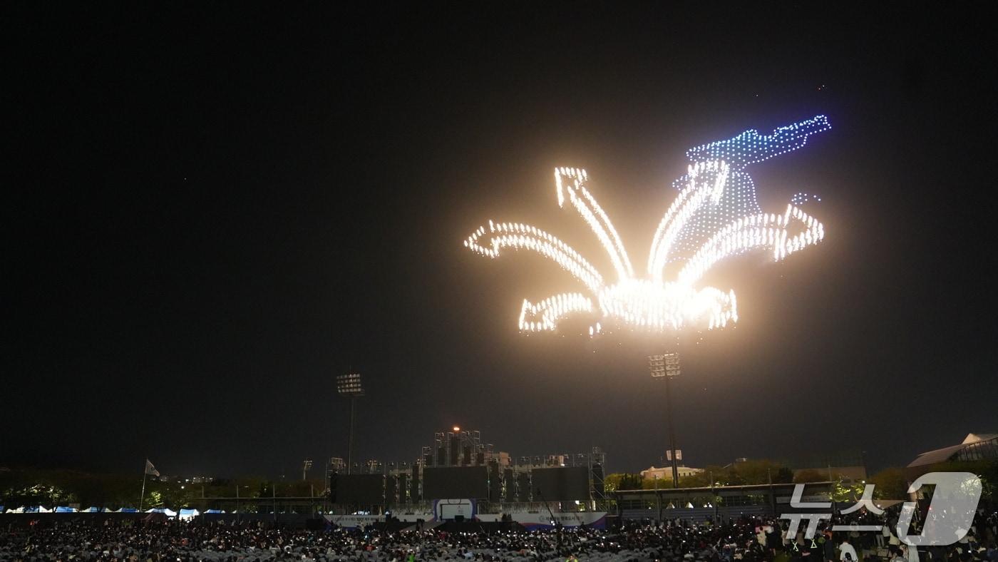 제주도민체전에서 펼쳐진 드론라이트쇼(제주도 제공.재판매 및 DB금지)/뉴스1