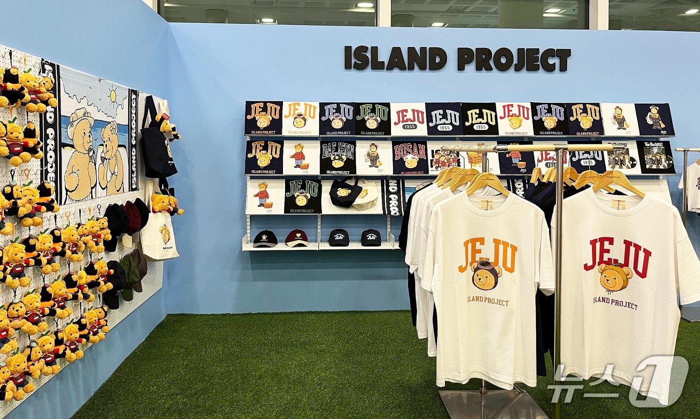 제주국제공항 1층에 있는 '아일랜드 프로젝트' 팝업스토어에 아일랜드 프로젝트의 시그니처 티셔츠와 모자, 가방 등이 진열돼 있다.(한국공항공사 제주공항 제공, 재판매 및 DB 금지)