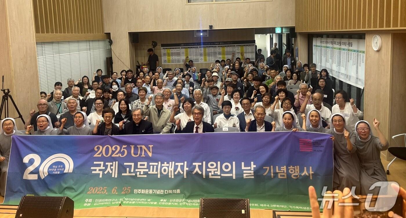 건강 문제로 이날 행사에 불참한 강 씨를 대신해 감사패를 받은 김종민 4·3 평화재단 이사장은 "고문은 인간의 존엄성을 철저히 파괴하는 범죄"라며 "고문을 근절하고 피해자들이 일상으로 복귀할 수 있도록 돕는 일은 모든 국가의 책무이자 책임"이라고 말했다.