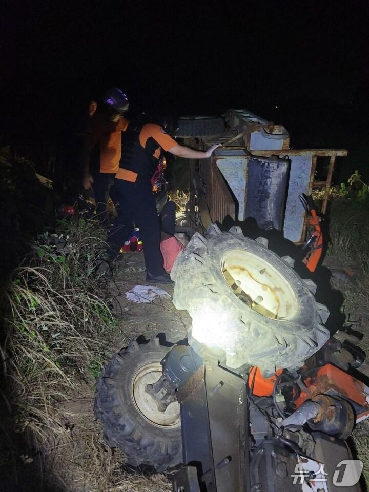 119 구급대가 경운기에 깔린 80대를 구조하고 있다(제주소방안전본부 제공. 재판매 및 DB 제공)/뉴스1고동명 기자 신세계사이먼, 제주사회복지공동모금회 '나눔명문기업' 가입제주도 '문화헌장' 선포…"지속가능 문화자치 시대"
