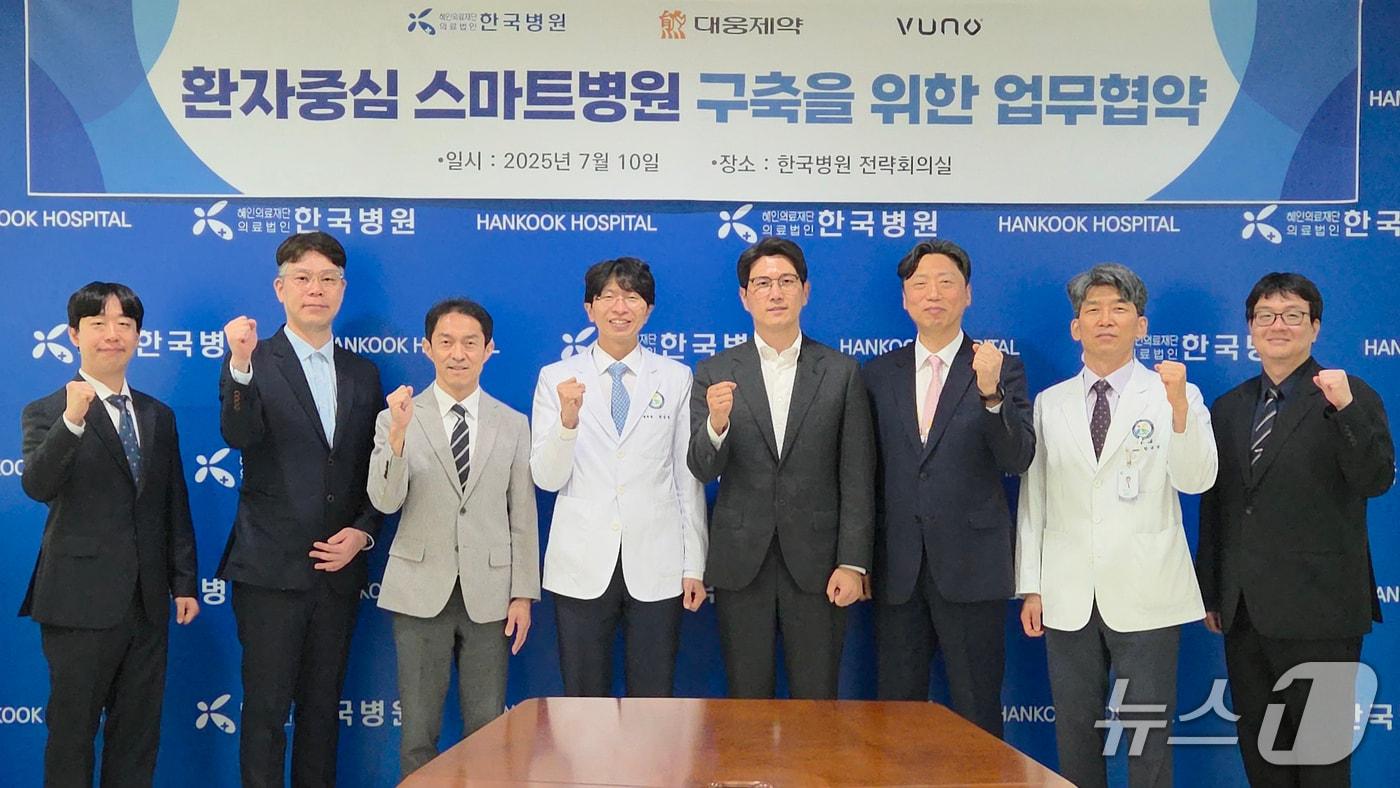 지난 10일 제주한국병원과 대웅제약, 뷰노가 '환자 중심 스마트 병원 구축을 위한 업무협약'을 체결하고 있다.(제주한국병원 제공. 재판매 및 DB금지)