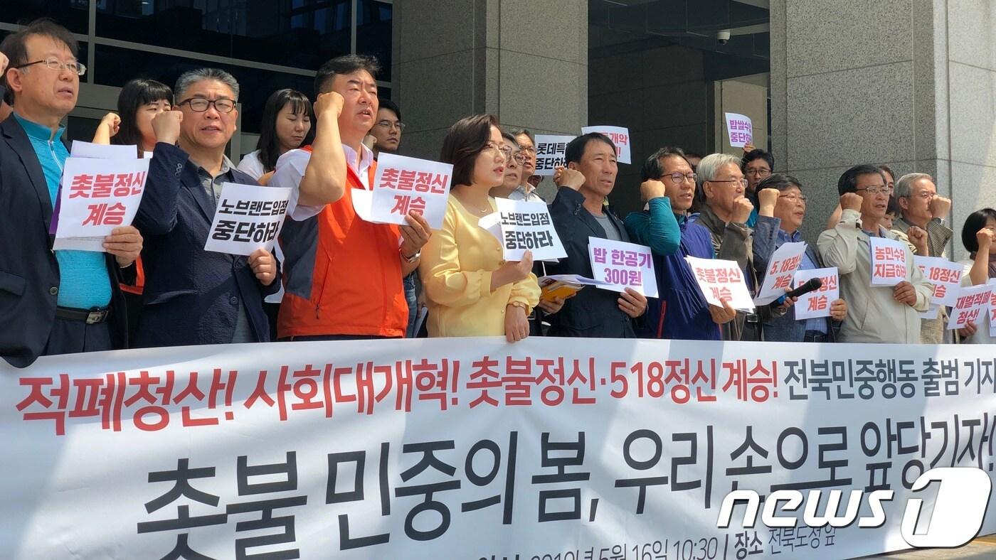 전북 민노총 등 27개 단체가 모인 전북민중행동은 16일 도청에서 출범 기자회견을 열었다.2019.05.16ⓒ 뉴스1