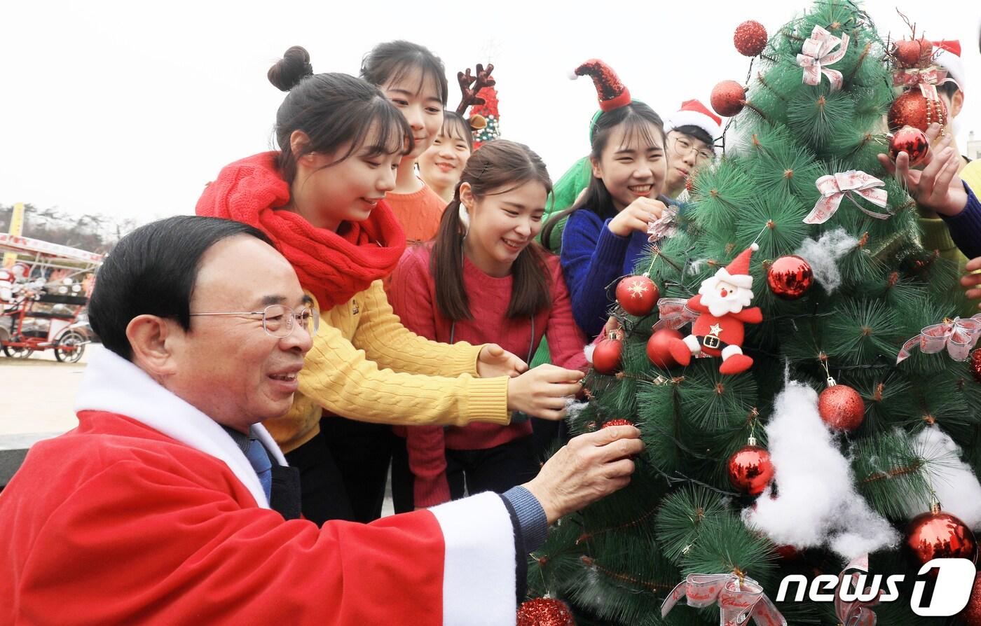 2019 임실 산타축제 개막식이 열린 지난 21일 전북 임실군 임실치즈테마파크 일원에서 행사장을 찾은 어린이들이 산타 썰매를 타고 있다. 2019.12.21/뉴스1 ⓒ News1 유경석 기자
