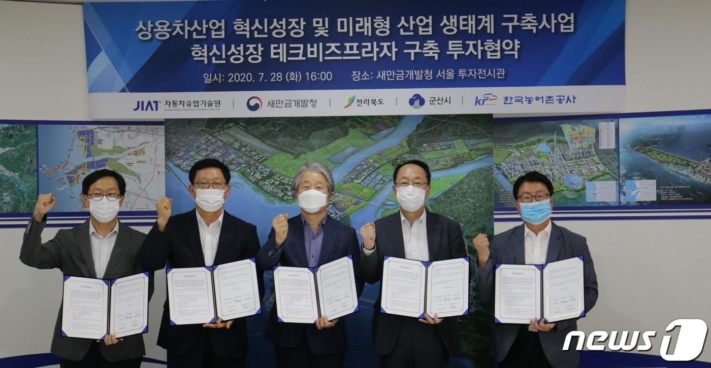 미래상용차 혁신성장 플랫폼 ‘테크비즈 프라자’ 구축전북도와 새만금개발청 등 5개 유관기관은 28일 새만금개발청 서울 투자전시관에 '상용차산업 혁신성장 및 미래형 산업 생태계 구축사업' 테크비즈프라자 구축 투자협약을 체결했다.(새만금개발청 제공)2020.7.28 /ⓒ 뉴스1유승훈 기자 전북 서부권역 초미세먼지 주의보 발령…국외 미세먼지 유입 영향전북도노조 "도 산하기관 비정규직 생활임금 적용 차별 시정"