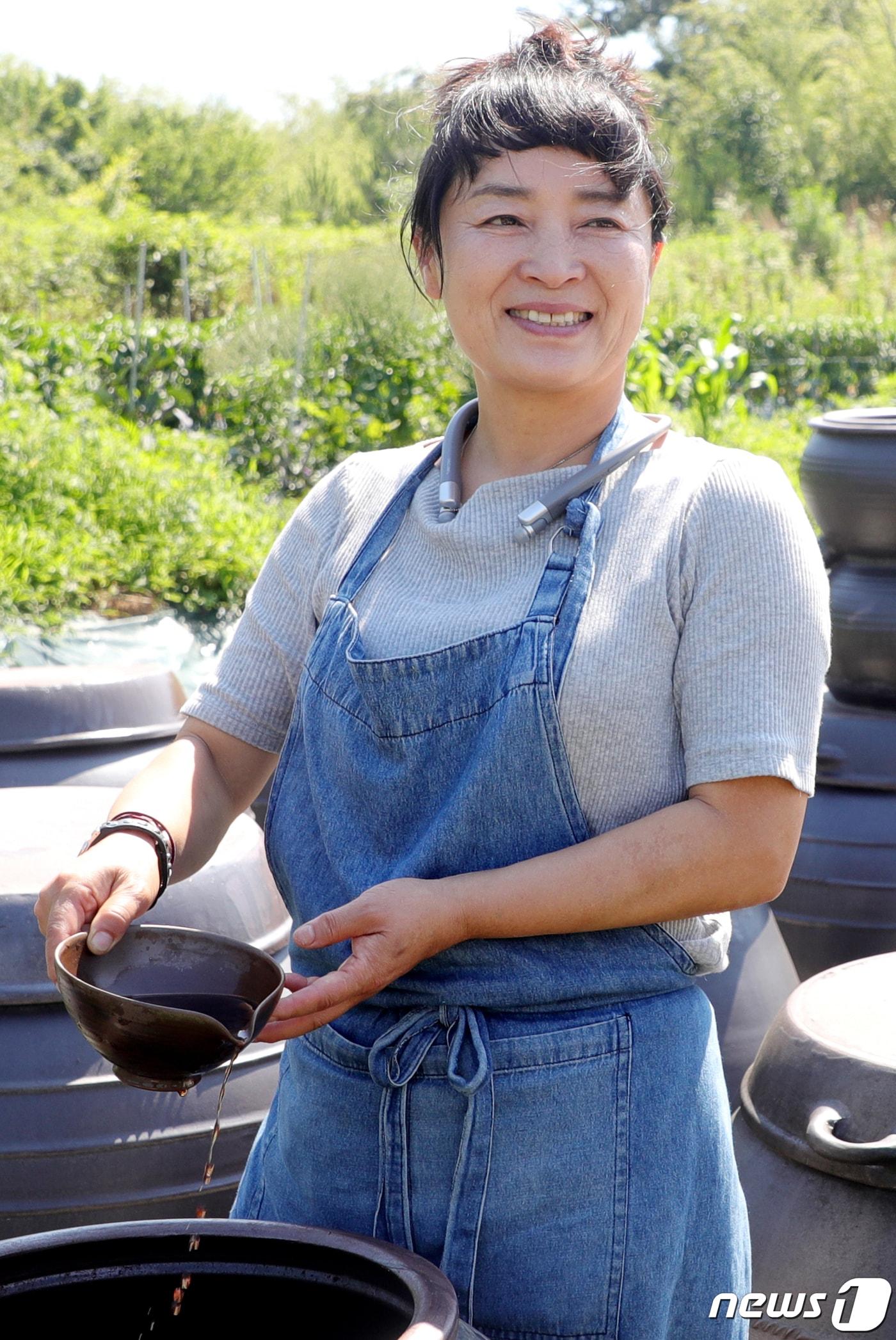 전북 김제시 진봉면에 자리한 '지애의 봄향기' 함지애 대표가 자신이 직접 빚은 전통발효식초에 대해 설명하고 있다. 2021.6.25/뉴스1 ⓒ News1 유경석 기자ⓒ 뉴스1
