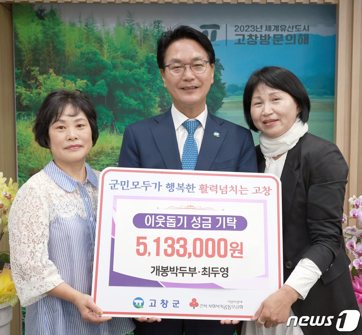 고창 개봉박두부(사장 주정희)와 최두영씨 등 지역주민들이 5일 고창군청을 방문하고 513만3000원을 기탁했다.(고창군 제공)2023.6.5/뉴스1