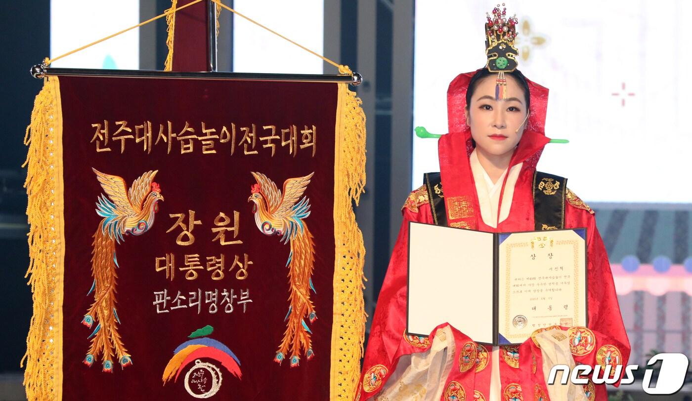 제49회 전주대사습놀이 전국대회가 열린 5일 전북 전주시 국립무형유산원에서 판소리명창부 장원을 차지한 서진희 씨가 상장을 들어 보이고 있다. 2023.6.5/뉴스1 ⓒ News1 유경석 기자