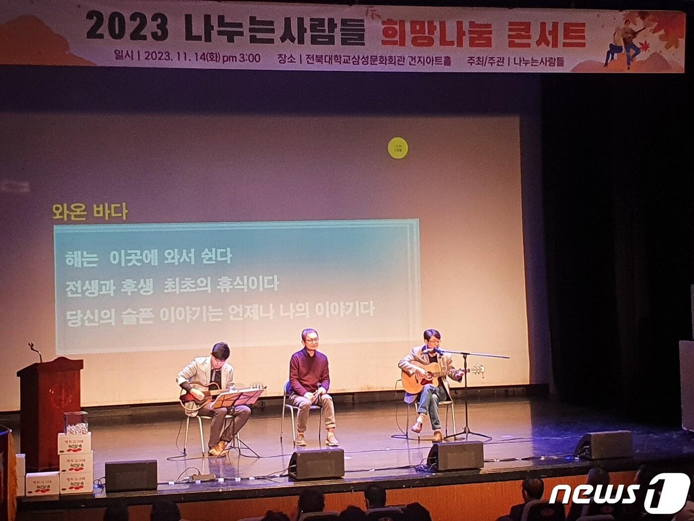 14일 (사)나누는사람들이 전북대학교 삼성문화회관 건지아트홀에서 희망나눔 콘서트를 갖고 있다.(나누는사람들제공)2023.11.14/뉴스1김동규 기자 "촘촘한 노인복지 정책 협력"…김관영 전북지사, 임실군 방문진안군, 농업창업·주택지원 대상자 모집…연 2% 대출 금리