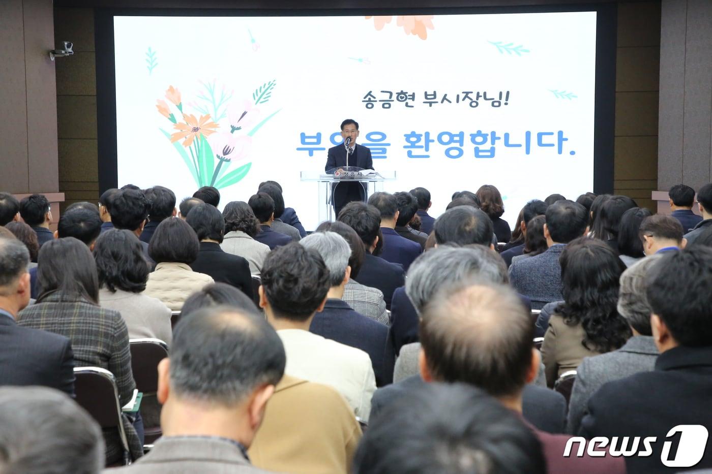 송 부시장, 2일 취임…시무식 참여해 공식업무 시작송금현(57) 전북도 전 정책기획관이 2일 정읍시 부시장으로 부임했다.(정읍시 제공)2024.1.2/뉴스1 관련 키워드송금현 정읍부시장