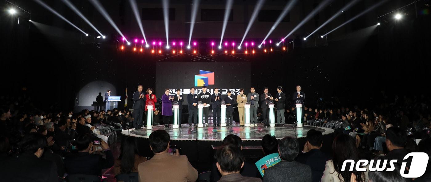 서거석 전북특별자치도 교육감이 22일 전북 전주시 전주화산체육관에서 열린 '전북특별자치도교육청 출범식'에 참석해 기념사를 하고 있다. 2024.1.22/뉴스1 ⓒ News1 유경석 기자관련 키워드전북특자도교육청 출범. 서거석 전북교육감임충식 기자 '교육감 출마' 유성동 "달빛도서관 100곳 설치…교육·돌봄·문화 거점으로"전북 방송통신중·고교 신입생 169명 모집…원서접수 시작