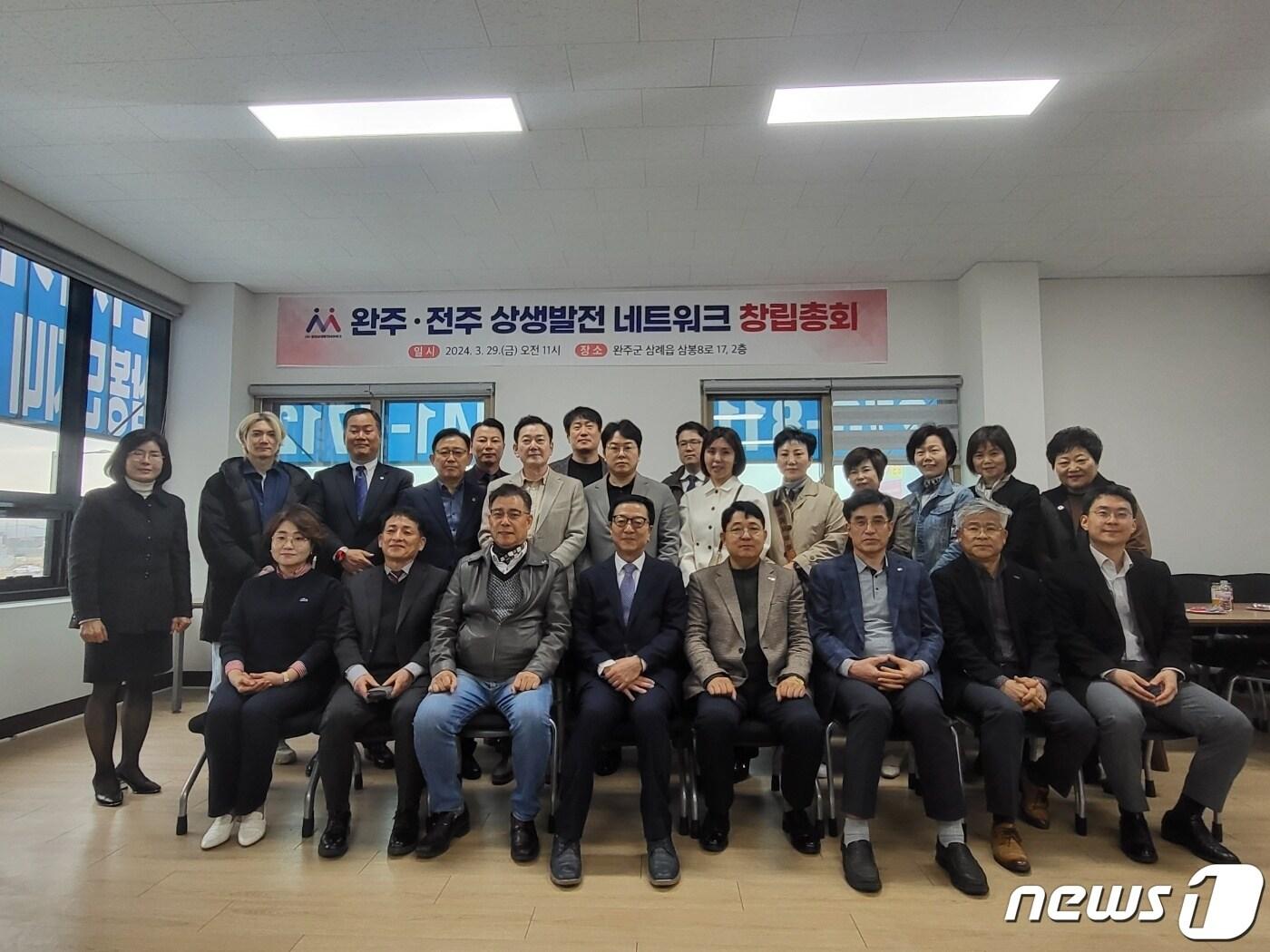 성도경 비나텍 대표 이사장 선출…이미숙 전 시의원 사무총장 임명“완주·전주시민 삶의 질 향상 위한 상생 협력 사업, 정책 발굴 총력”지난 3월29일 전북자치도 완주군 삼례읍 완주-전주상생발전네트워크 사무실에서 창립총회가 개최된 가운데 회원들이 기념촬영을 하고 있다.2024.4.1.(완주-전주상생발전네트워크 제공)/뉴스1 유승훈 기자 김관영 "윤석열 징역 5년, 단죄 시작…형량 너무 아쉬워""도로·의료·복지 전방위 지원"…순창 발전 협력 청사진 밝힌 전북도