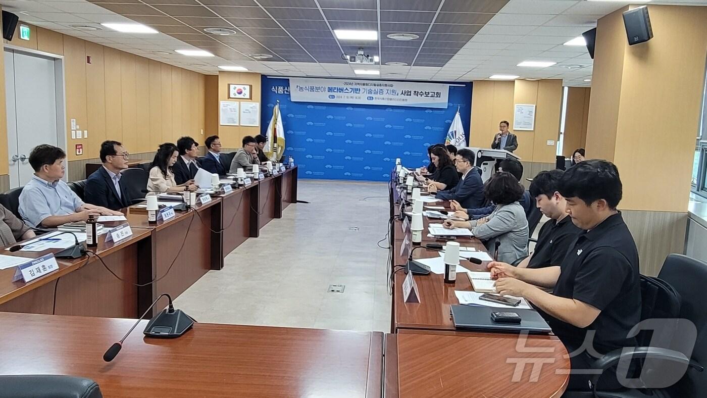 18일 전북자치도 익산시 한국식품산업클러스터진흥원에서 열린 '농식품분야 메타버스 기반 기술실증 지원사업 착수보고회' 모습.2024.7.18.(전북자치도 제공)/뉴스1