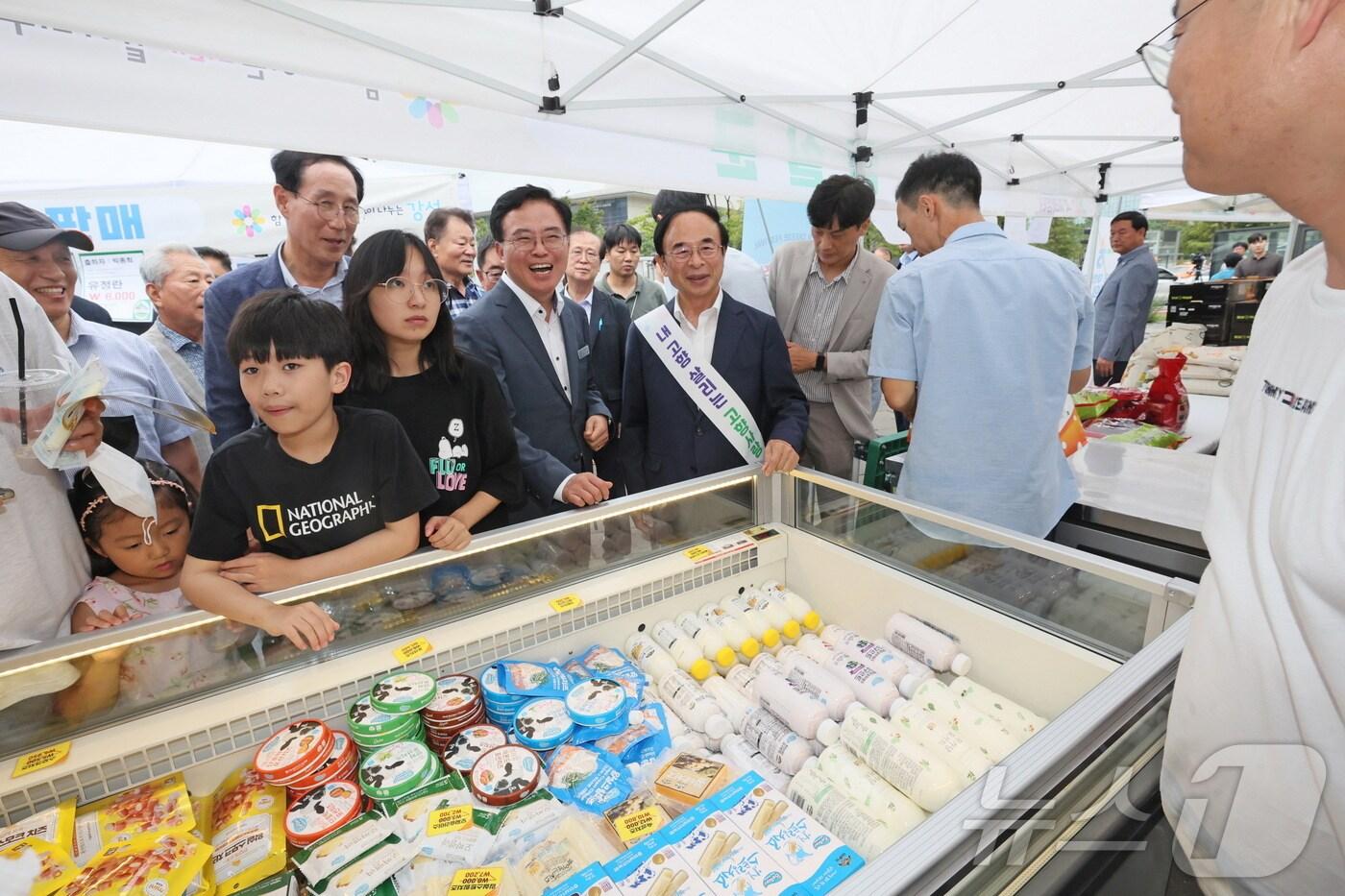 심민 전북자치도 임실군수 일행이 서울 강서구 마곡광장에서 열린 직거래 행사장을 방문해 격려하고 있다.(임실군제공)2024.9.7/뉴스1관련 키워드직거래장터김동규 기자 "촘촘한 노인복지 정책 협력"…김관영 전북지사, 임실군 방문진안군, 농업창업·주택지원 대상자 모집…연 2% 대출 금리관련 기사기장군, '파머스마켓' 참여 농가 모집…"직접 키운 농산물 판로 지원"말차가 '보성몰' 매출 주도했다…지난해 22억 돌파대구 동구 '팔공산 미나리' 출하…직거래·하나로마트서 구매 가능'아라가야 숨결로 빚은 명품' 함안곶감축제 23~25일 개최조근제 함안군수 "쉬지 않고 끊임없이 전진"…새해 군정방향 소개