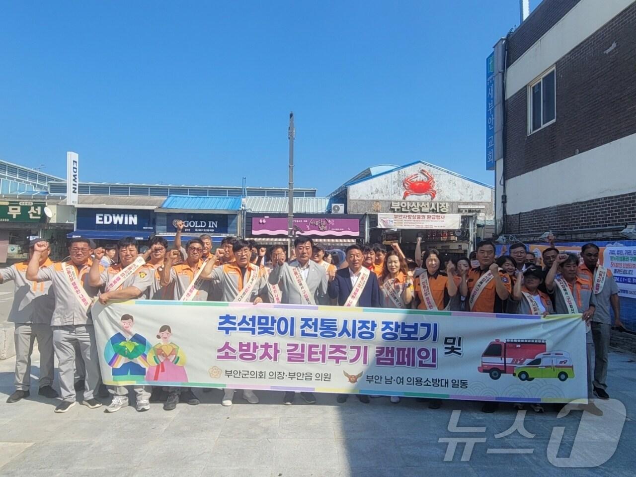 부안군의회(의장 박병래) 제354회 임시회가 9일간의 일정을 마치고 11일 폐회했다. 앞서 부안군의회는 추석을 앞두고 10일 전통시장 활성화를 위해 부안상설시장에서 의용소방대원들과 함께 장보기 행사를 진행했다.(부안군의회 제공)2024.9.11/뉴스1 관련 키워드부안군의회관련 기사"'RE100 국가산단' 부안이 최적지"…범군민유치추진위 출범KDLC전북 "자치분권으로 발전방향 모색"…내달 신년인사회전북 공공기관 청렴도 대체로 낮아…자구책 마련 시급김양원 전 전주부시장, 부안군수 선거 출마 선언전북지역 시군 의회 "초고압 송전선로 계획 취소하라"