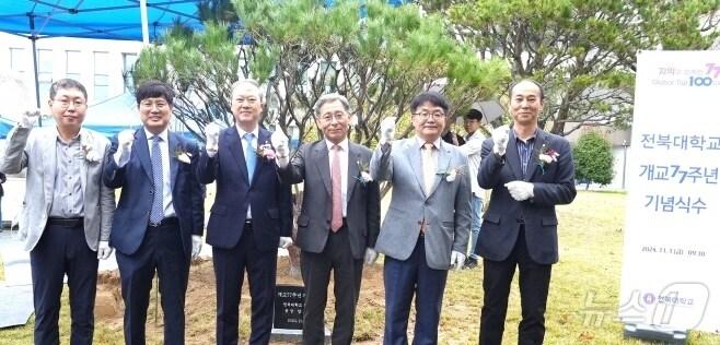 양오봉 전북대학교 총장(왼쪽에서 세번째)을 비롯한 보직교수들이 1일 개교 77주년 기념식수행사를 개최한 뒤 기념촬영을 하고 있다.(전북대 제공)/뉴스1관련 키워드전북대학교77주년 기념식수임충식 기자 전북 교사 7명, 교육부 '수업혁신교사상' 수상…"체계적 지원 입증"전주시, 하반기 특별교부세 38억 확보…주민편익 증진사업에 투입