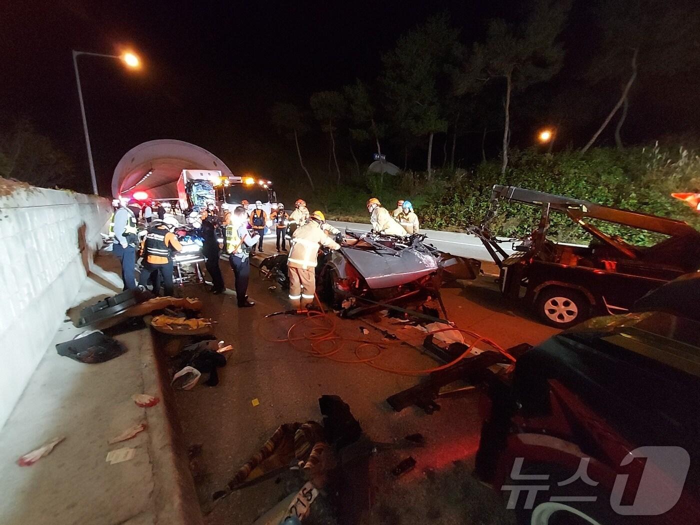 3일 전북자치도 임실 관촌면 순천완주고속도로 89.7㎞ 지점에서 차량 3대가 추돌하는 사고가 발생해 1명이 숨졌다.(전북자치도소방본부 제공) 2024.11.4/뉴스1 신준수 기자관련 키워드전북경찰고속도로추돌사고관련 기사전국 뒤덮은 안개·미세먼지…항공기도 못 뜨고 차량 '쾅'(종합)서해안 고속도로 '짙은 안개 커튼'…4중 추돌·역주행 2명 중·경상'졸음운전에' 사고 수습하던 경찰관 등 참변…운전자 입건(종합)서해안고속도로서 사고 수습하던 경찰관 등 2명 차에 치여 숨져새벽 통영대전고속도로서 트럭·윙바디 등 3대 추돌…1명 중상 이송