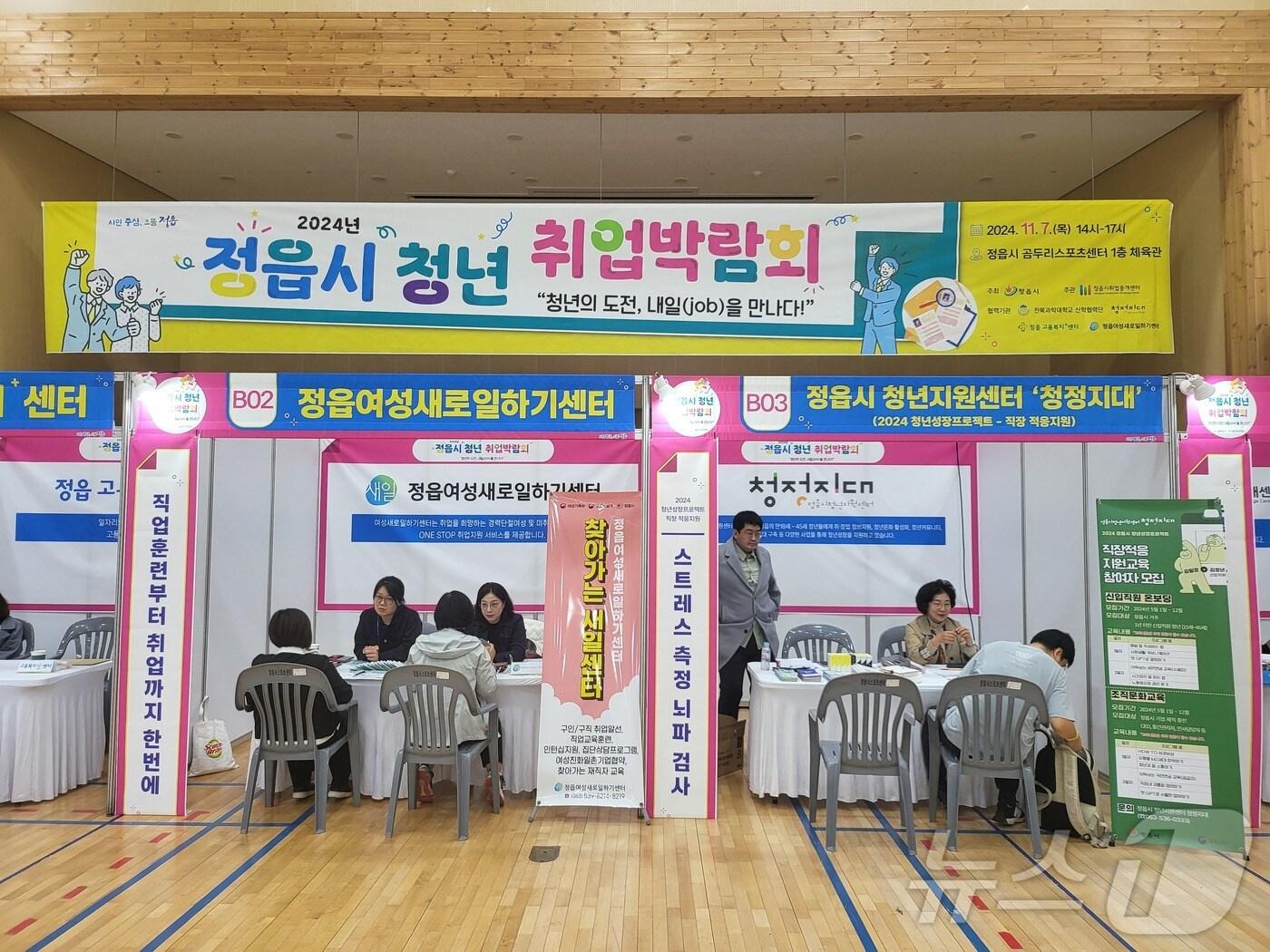 정읍시는 7일 곰두리스포츠센터에서 ‘2024 정읍시 청년 취업박람회’를 개최하고 지역 청년 구직자들에게 다양한 취업 기회를 제공했다.(정읍시 제공)2024.11.7/뉴스1관련 키워드정읍시청년 취업박람회관련 기사고용률 상승 정읍시, 일자리 생태계 구축 박차'청년부터 시니어까지 맞춤형 일자리'…12일 정읍시 취업박람회