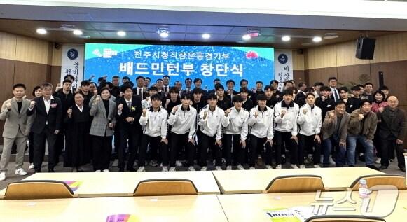 국립무형유산원에서 성황리에 창단식 개최13일 전북자치도 전주시 국립유형유산원 국제회의장에서 ‘전주시청 직장운동경기부 배드민턴부’ 창단식이 개최됐다.(전주시 제공)/뉴스1전주시 배드민턴팀.(전주시청 제공)/뉴스1관련 키워드전주시 배드민턴팀 공식 창단임충식 기자 전북대 학생들 '무기체계 자립도' 새 지표 제시…학계 '주목'올해 전주지역 중학교 신입생은 6153명…전년比 691명 감소관련 기사전주시청 배드민턴팀, 창단 1년 만에 전국대회 단체전 3위