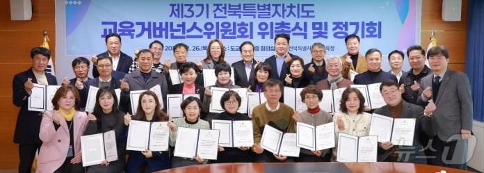 ‘제3기 전라북도 교육거버너스위원회’ 위촉식이 26일 전북특별자치도도교육청 5층 회의실에서 개최됐다.(전북교육청 제공)/뉴스1관련 키워드전북교육청교육거버넌스위원회임충식 기자 "주차 숨통" 전주 서부신시가지 유휴부지에 임시주차장 조성전북교육감 출마 예정자들 일제히 천호성 '표절 논란' 비판(종합)관련 기사군산시, 지역 먹거리 지수 평가서 '5년 연속 우수 지자체'"민·관 협력 강화"…전북교육거버넌스 역량 강화 워크숍전북교육거버넌스 첫 정기회 개최 "지역사회와 협력 강화"