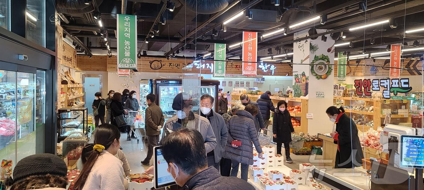 전주 호성점 신축 이전 계획전북자치도 진안군이 추진하는 로컬푸드 사업이 꾸준한 성장과 안정적인 사업 확장으로 주목을 받고 있다.(진안군제공)2025.1.11/뉴스1관련 키워드로컬푸드김동규 기자 "촘촘한 노인복지 정책 협력"…김관영 전북지사, 임실군 방문진안군, 농업창업·주택지원 대상자 모집…연 2% 대출 금리관련 기사전북도, 총 526개 공모사업 선정…4조 9581억 규모 국비 확보'새벽배송', '간편식' 농축수산물 안전 검사 강화SCL그룹 계열사 메코비, 中 위고 그룹과 글로벌 진출 협업 모색기장군, '파머스마켓' 참여 농가 모집…"직접 키운 농산물 판로 지원""지역경제 도약 발판 마련" 전북도-진안군, 지역 경쟁력 강화 '맞손'