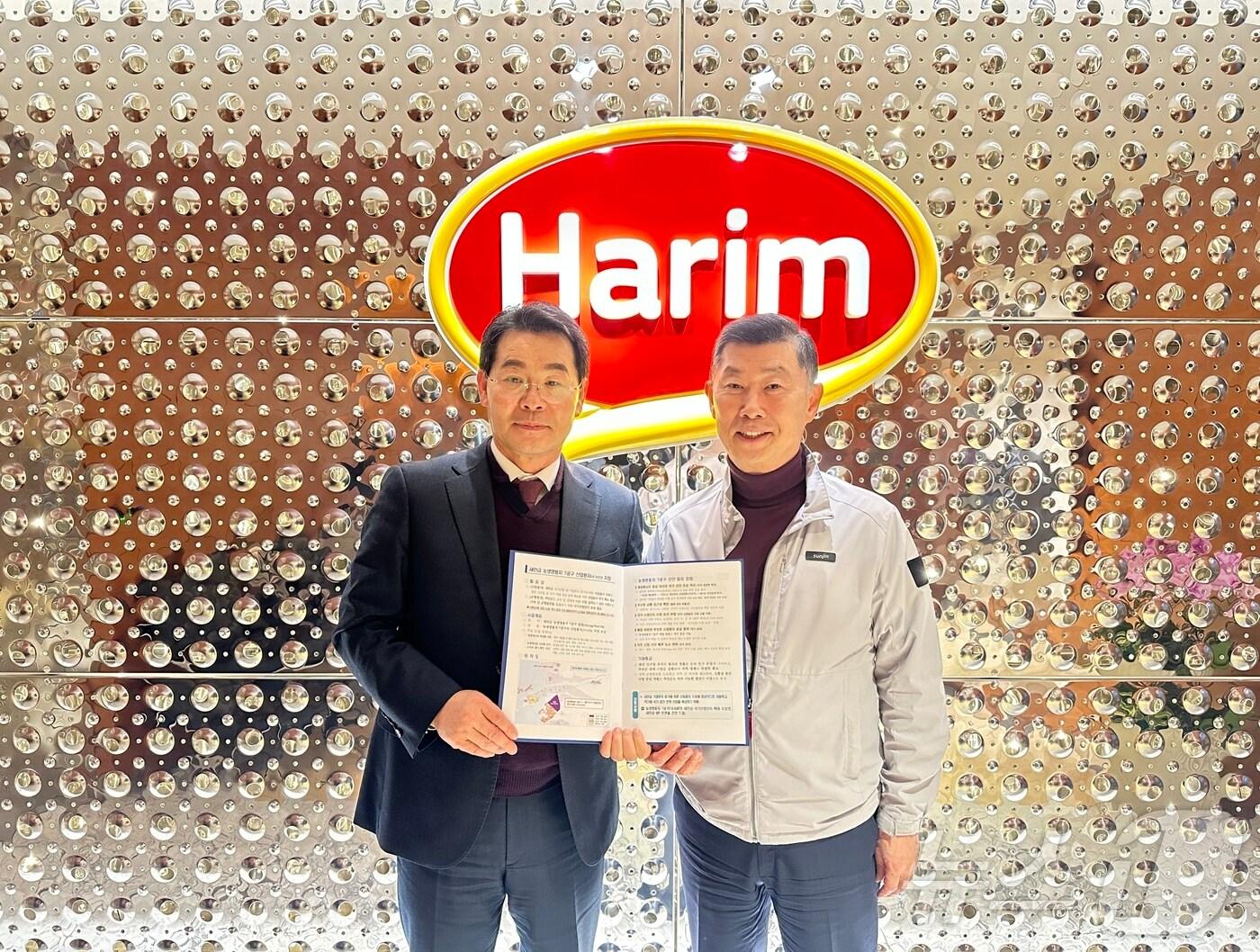 권익현 군수(왼쪽)가 김홍국 새만금위원회 민간위원장(하림그룹 회장)을 만나 새만금 7공구의 산업단지 전환을 요청했다.(부안군 제공)20225.1.16/뉴스1관련 키워드김홍국 새만금위원장권익현 부안군수새만금 7공구
