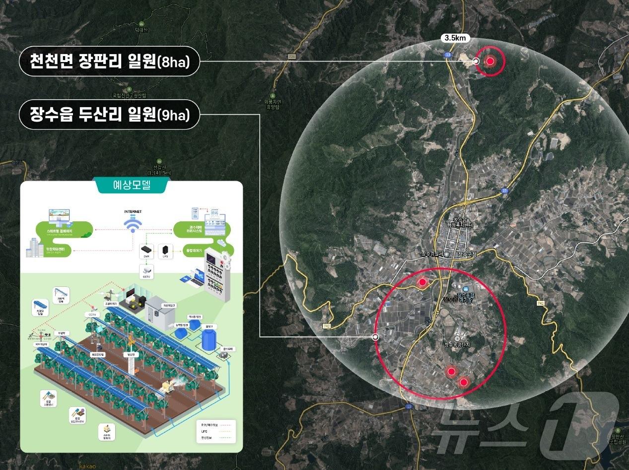 기계화·자동화로 노동력 30% 절감…생산성 2~4배첨단 농업환경 구축, 지속가능한 사과 산업 육성 박차장수 스마트 과수원 특화단지 조감도.(전북자치도 제공)/뉴스1유승훈 기자 김관영 "윤석열 징역 5년, 단죄 시작…형량 너무 아쉬워""도로·의료·복지 전방위 지원"…순창 발전 협력 청사진 밝힌 전북도